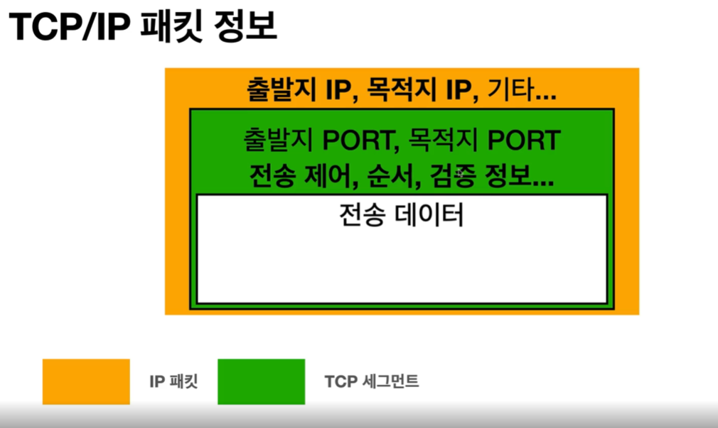 IP 패킷안에다 TCP 관련된 정보가 들어간다. PORT,전송제어,순서,검증 정보 등...