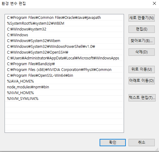 위의 환경변수 path는 중요한 것 같으니, 없으면 복사 붙여넣기를 해보는게 좋을 것 같다.