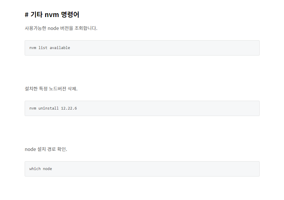 설치 후 설치된 node 버전 목록을 확인하려면 다음과 같은 명령어를 입력해준다.