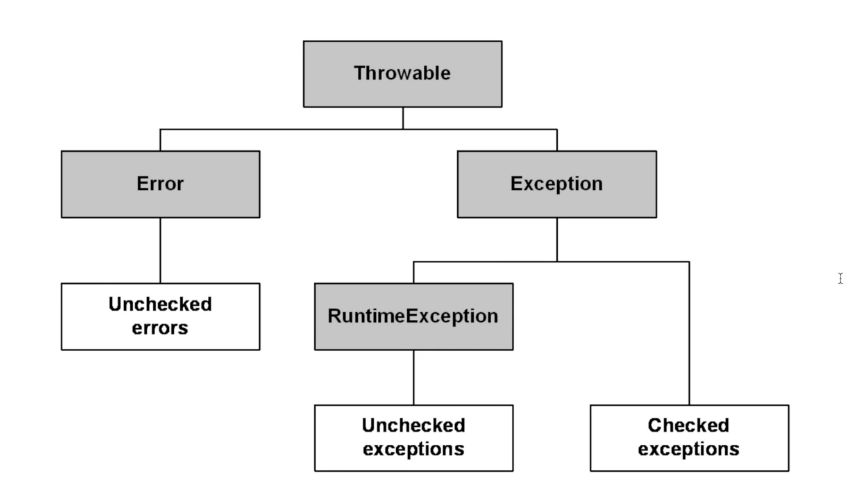 ③ Exception: 시스템에서 포착 가능하며(try-catch) 복구 가능.예외 처리 강제