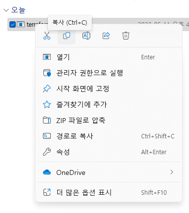 ④.압축 해제 된 파일에 terraform.exe이 있다. 복사 한다.