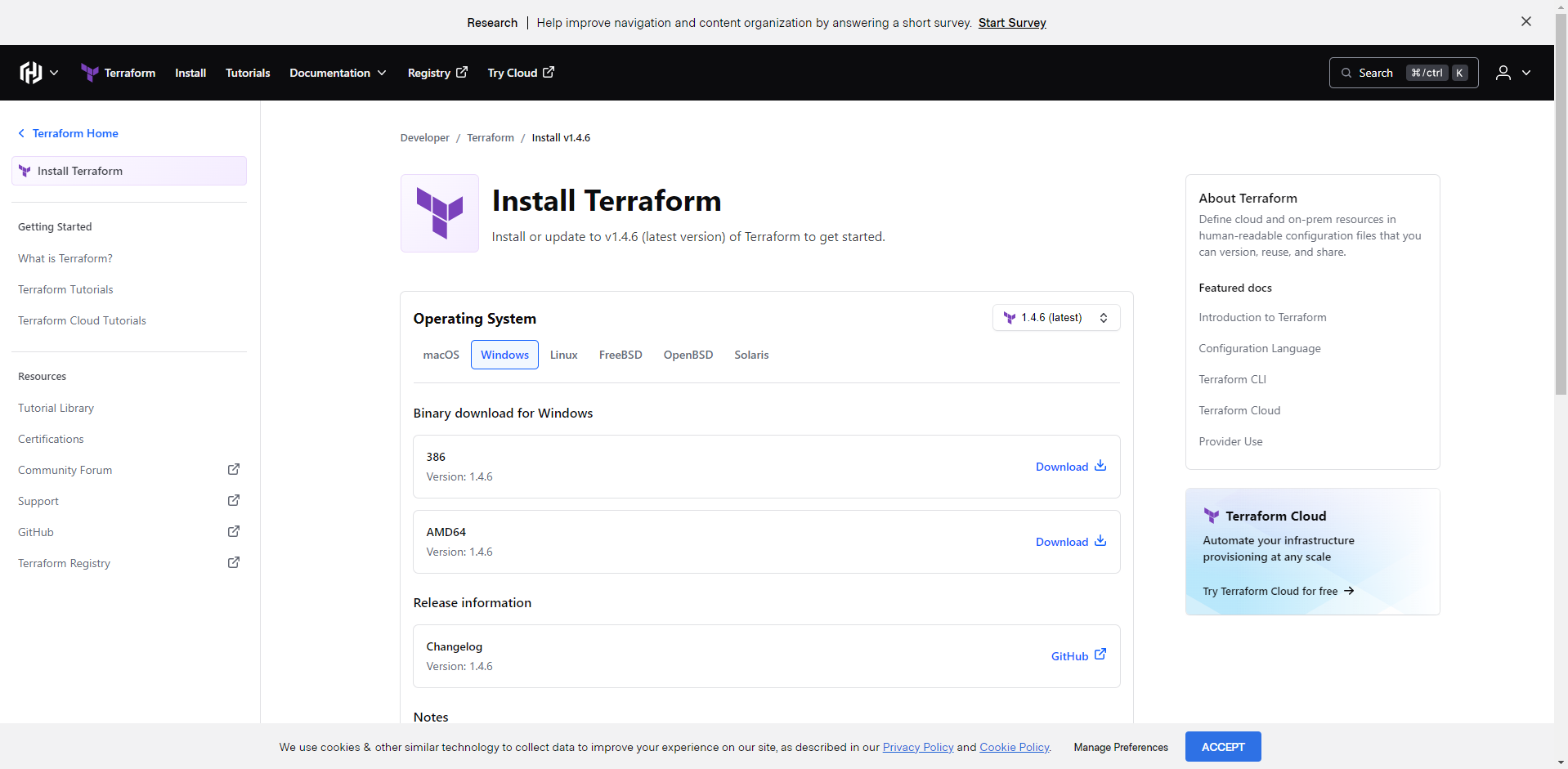 ①. https://developer.hashicorp.com/terraform/downloads 링크 접속.