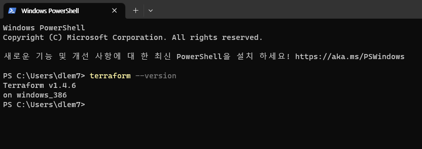 ⑦. cmd 혹은 Powershell 실행 후, "terraform --version" 입력 한다.