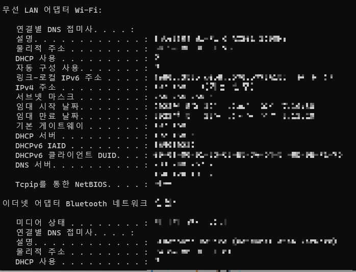 (1). 컴퓨터의 네트워크 설정 정보(IP 주소, 게이트웨이 등)를 확인할 수 있다.