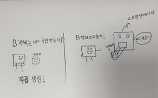 다음을 보면 Class B object를 사용하기 위해 Class A에서 Object를 직접 생성한다.