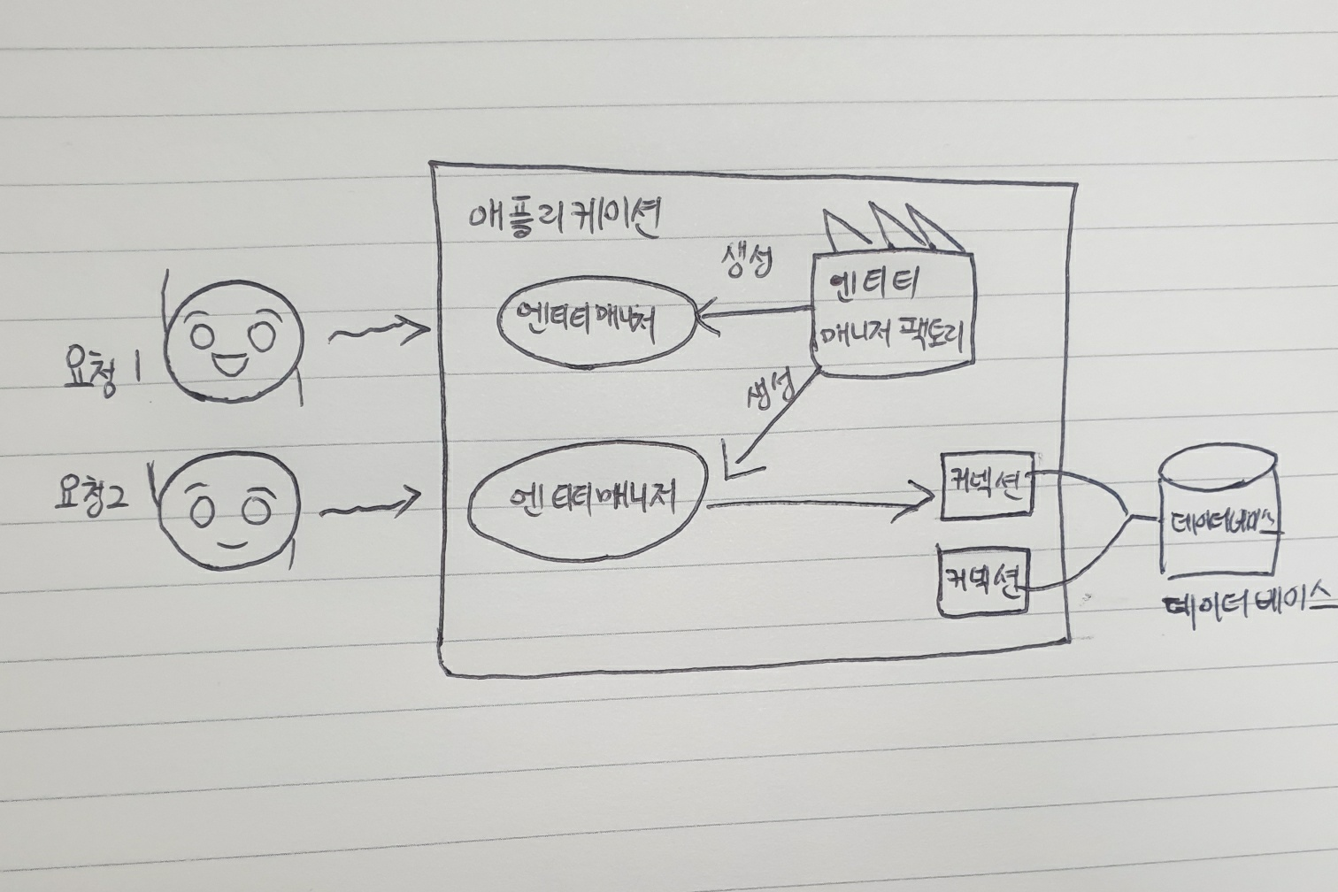 예를 들어, 두 명의 사용자가 동시에 회원 가입을 한다고 생각해보자. 이때 각 사용자의 회원 가입 요청에 대해 엔티티 매니저 팩토리는 독립적인 엔티티 매니저를 생성한다. 각 엔티티 매니저는 자신이 담당하는 사용자의 정보를 데이터베이스에 저장하게 된다. 이렇게 각각의 엔티티 매니저를 통해 회원 가입 처리가 완료되면, 사용자 정보는 데이터베이스에 안전하게 저장된다.