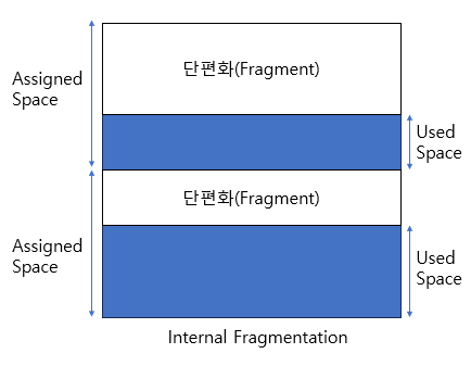 내부 단편화는 메모리가 고정 크기의 블록으로 분할되었을 때 발생한다. 과정이 메모리보다 작을 때 내부 단편화가 발생한다. 이 문제는 메모리 블록의 크기를 고정시킴으로써 발생한다. 동적 파티셔닝을 사용하여 프로세스에 공간을 할당하면 이 문제를 해결할 수 있다.