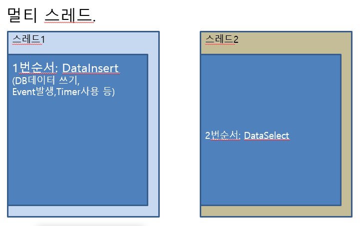 데이터를 읽는 작업을 Thread2에서 한다거나 할 때 AutoResetEvent를 사용하면 효과적이다.