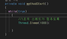 즉, 아래의 스레드 부분이 계속 실행이 되고 있다는 것이다.