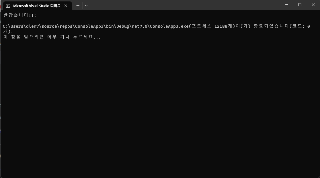 Console.WriteLine($"안녕하세요, {name}!");