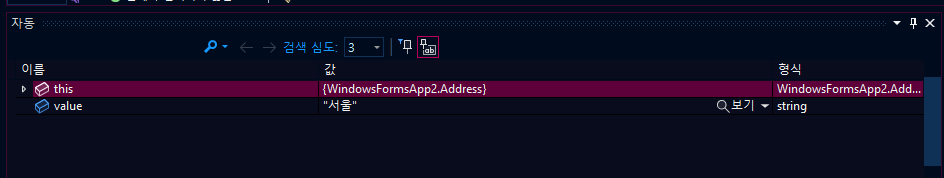 여기서 textBoxCity는 사용자가 도시 이름을 입력할 수 있는 텍스트 박스다. address는 주소 정보를 담고 있는 객체이고, City는 그 중 도시 이름을 나타내는 속성이다.