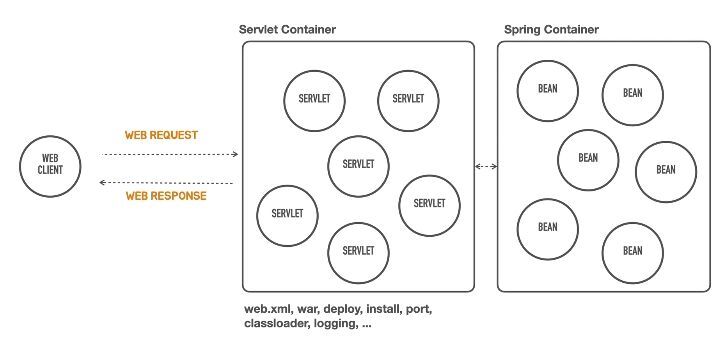 이 얘기는 뭐냐면 서블릿컨테이너 아예 안 쓰고 어떻게 스프링 컨테이너가 웹 요청을 바로 받을 수 있을까 뭐 이런 얘기는 아니고 서블릿컨테이너라는게 필요 하지만, 이 동작을 해야 되지만 이거를 설치하고 관리하고 신경 쓰기 위해서 개발자가 뭔가를 시간을 들이고 지식을 학습을 하고 적용하는 이런 위에 수고들 없이 할 수 있으면 좋겠다.