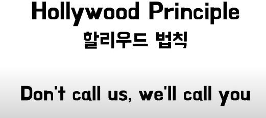 우리가 어떤 것을 주도하여 호출하는 것이 아니라, 주도권은 빼앗기고 호출 당하기를 기다리는 모습이 IoC와 비슷해서 Gof 디자인 패턴에서는 Holywood principle이라고 불리기도 한다.