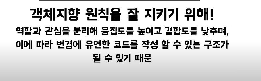 객체간 결합도를 낮추면서 앞서 본 예시와 같이 변경에 유연한 코드를 작성할 수 있는 구조가 될 수 있다.