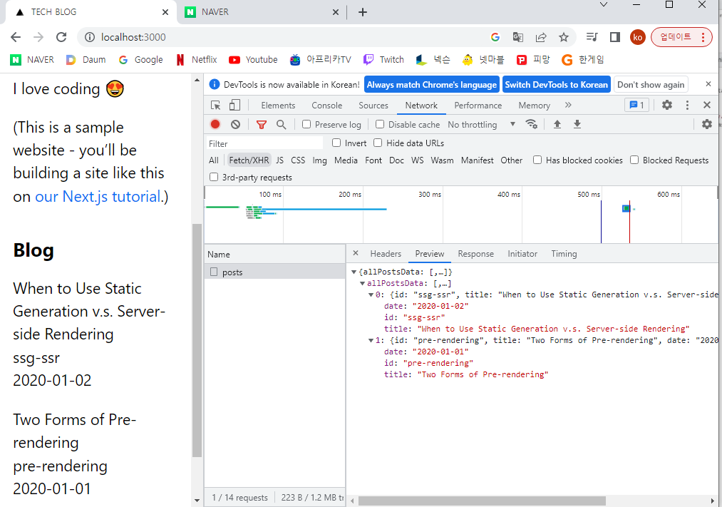 //id는 파일 이름이었고, 그것을 빼내주는 것이 getSortedPostsData 함수다.