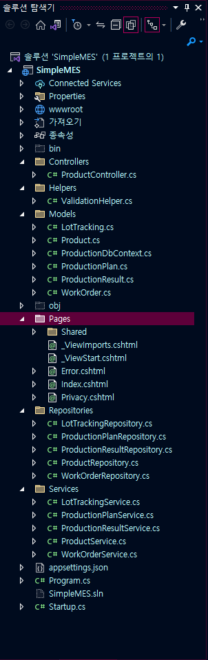 그렇게 정리를 했고 제조업체의 생산관리를 도와주는 웹 애플리케이션을 만들고 싶었고, ASP.NET Core(NET6.0)를 사용해 개발하였다.