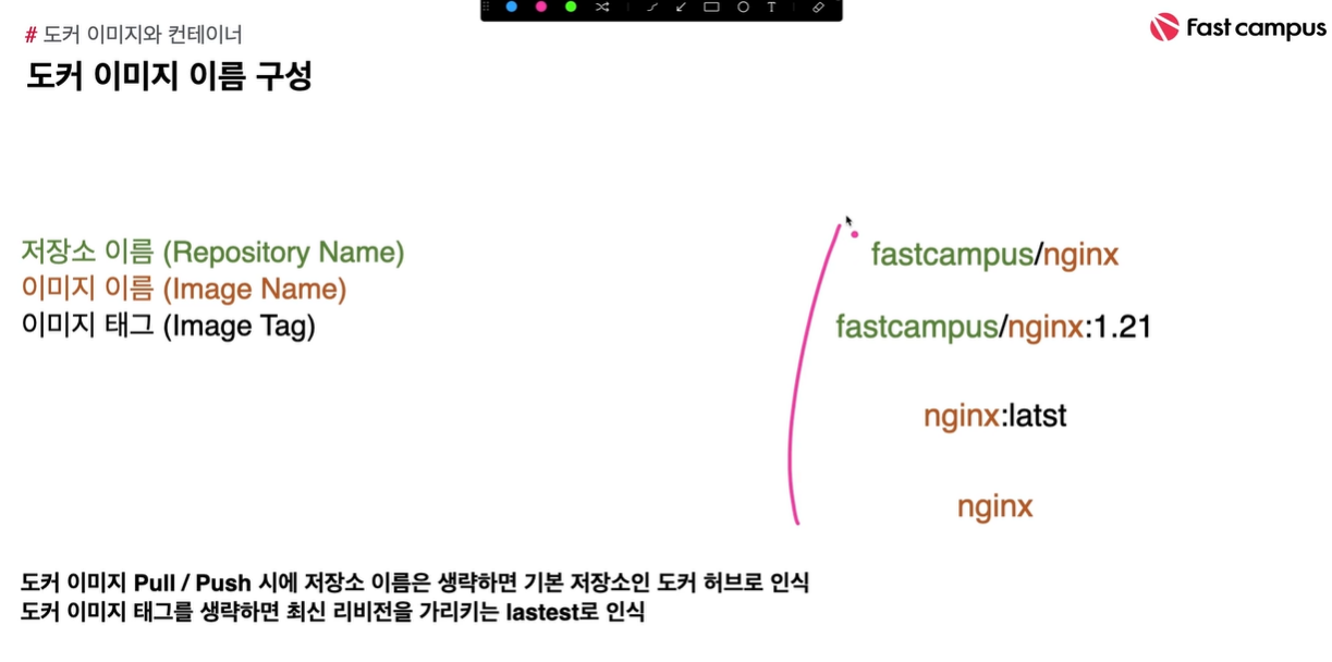 저장소 이름이 생략되면 도커 허브로 인식 된다.