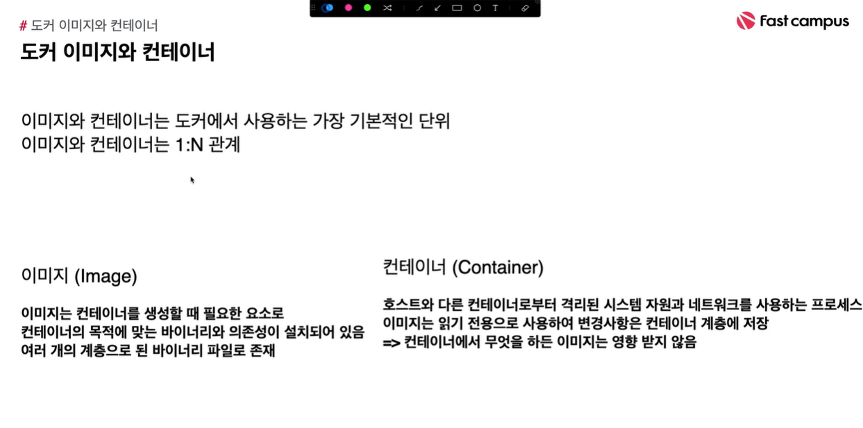 위의 그림 처럼, 이미지와 컨테이너는 1:N 관계 이다.